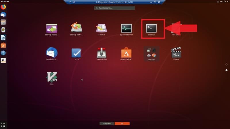 - Update the new IP address in the Magento database: open the terminal using the CTRL+ALT+T keyboard shortcut, or alternatively, open the terminal from the launch application section: