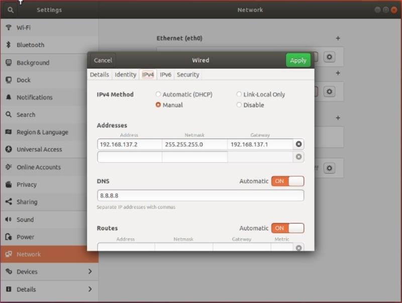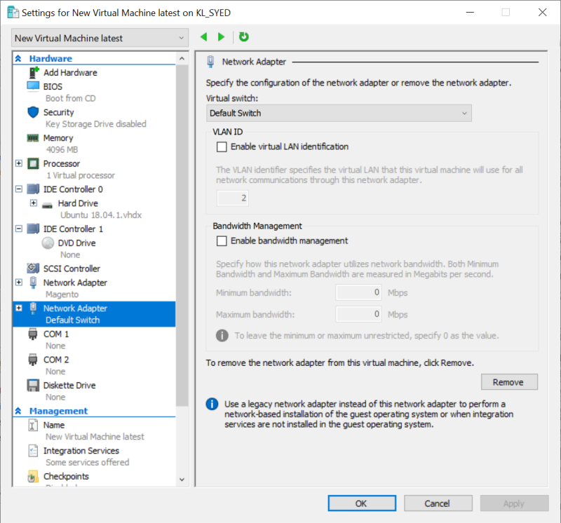 Next step is to connect to the network. The virtual switch that you created in step 1 is used here: