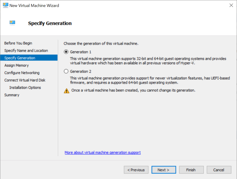 In the next screen you specify a generation. Accept or select the default Generation 1: