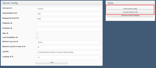 If there is a need to copy device configs from one machine to another or to batch delete them, there are two buttons in the tools section of Server configuration called Export device configs and Generate Deletion XML: