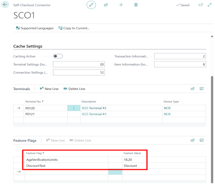Add the following Feature Flags in the Self-Checkout Connector card: