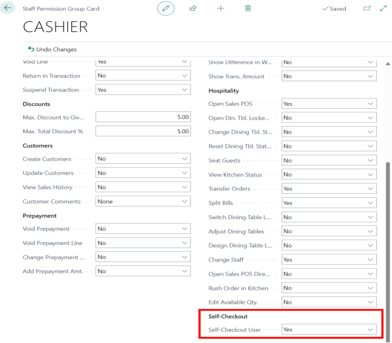 - Set Self-Checkout User to Yes for the assigned staff member.
