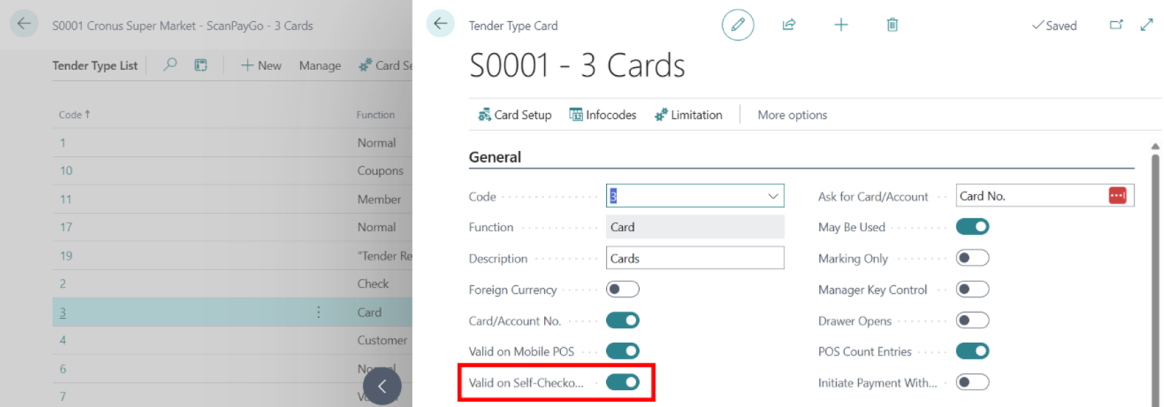 The POS SCO Device requires the tender type ID for card payments to be
