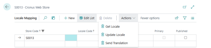 The screenshot below displays the locale mapping page and the available actions for managing languages: