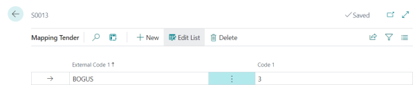 - Map the Shopify Gateway code to the External Code 1 field, and map with the LS Central Tender type code in the Code 1 field.