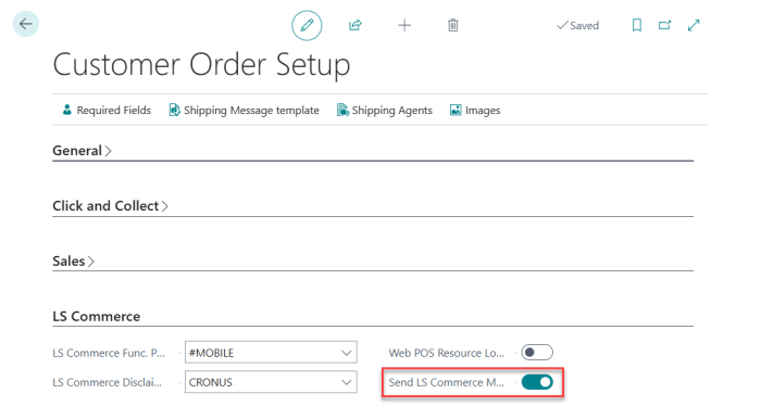 - Select the Send LS Commerce Messages check box in the LS Commerce FastTab.