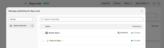 Note: Items distributed to this store will be assigned to all listed Sales Channels. Remove any unwanted channels before updating items to Shopify.