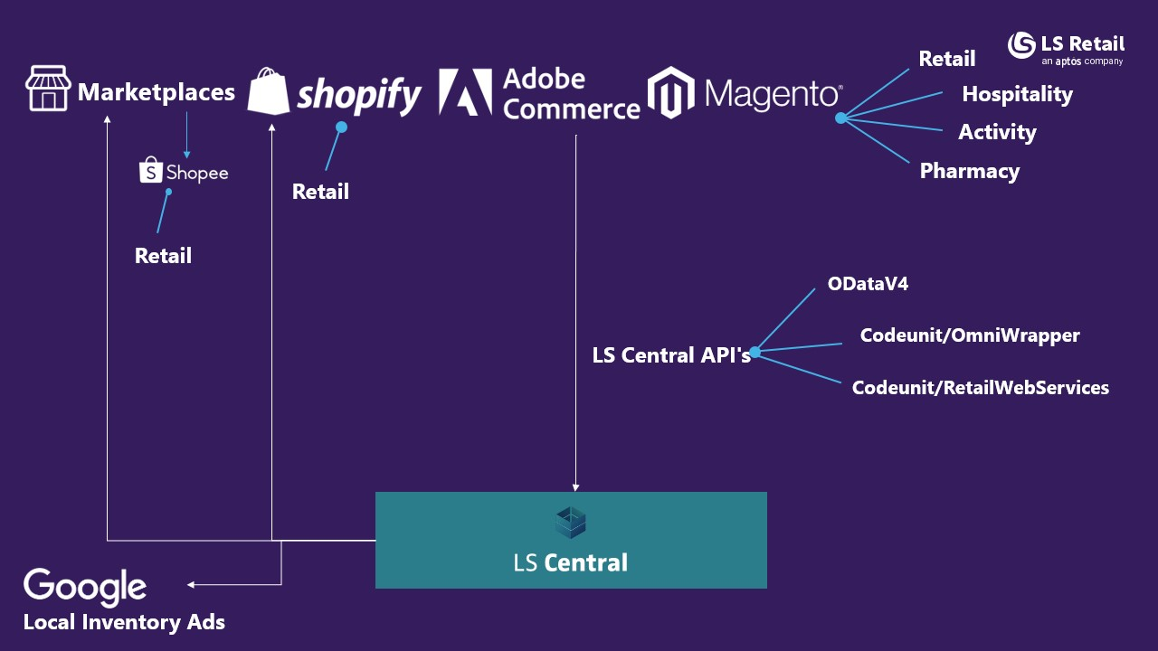 Instead, this integration communicates with LS Central through its native API stack, including: